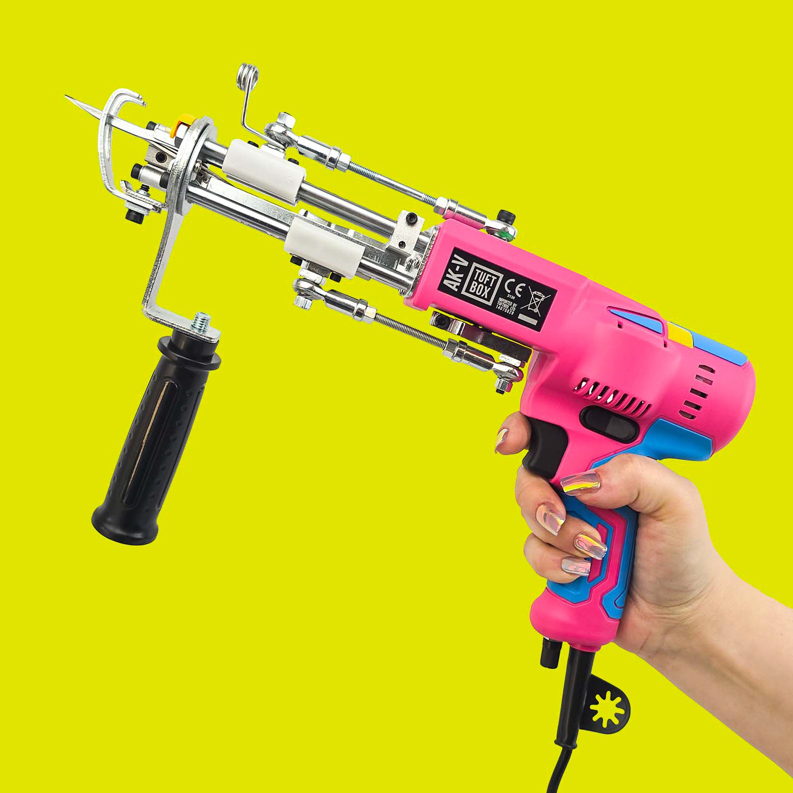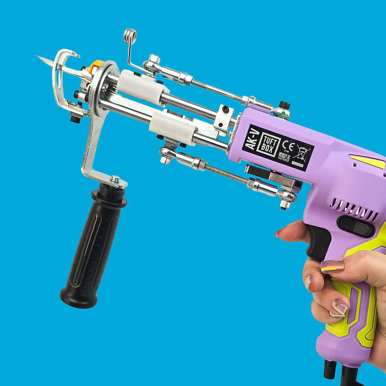 Every AK-V cut pile tufting gun sold by Tuftbox adheres to the high quality and safety standards expected for all UK machinery. The AK-V cut pile tufting gun is CE marked, affirming the machine conforms to both the UK and European standards for health, safety and environmental protection.